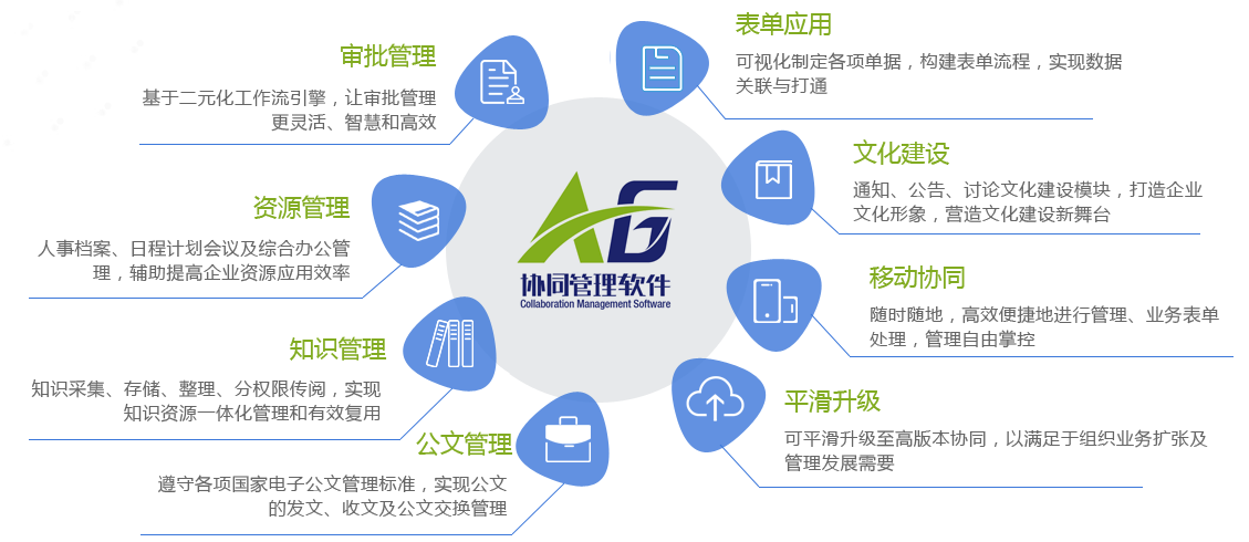 ●平滑升級至高版本的 A8 協(xié)同管理管理軟件,以滿足組織業(yè)務(wù)擴張及管理發(fā)展需要。A8 協(xié)同管理軟件可實現(xiàn)集團架構(gòu)管控、異構(gòu)系統(tǒng)集成、 高級表單業(yè)務(wù)生成器應(yīng)用、解決其他繁雜的業(yè)務(wù)場景流程設(shè)計,建立完整有效的企業(yè)工作平臺。